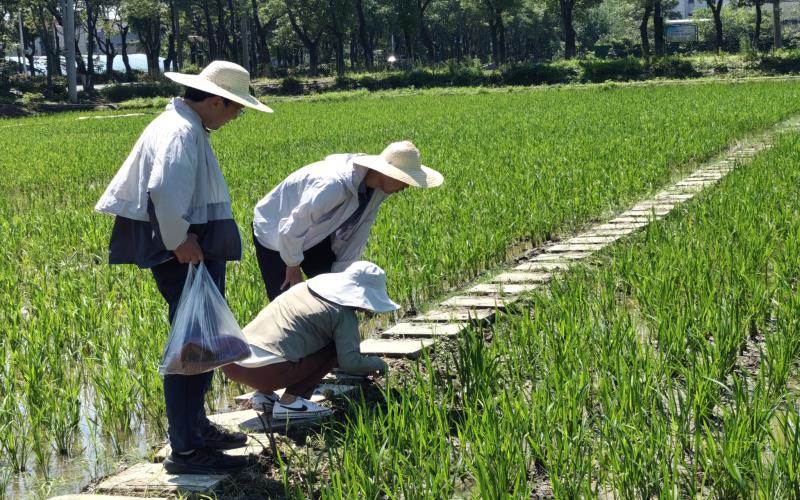 7月4日至5日,院生态环境研究所所长陆强带队,深入桐乡市大麻镇永丰村、平湖市新埭街道等水稻新品种、新技术示范基地进行实地考察,了解今年水稻生长态势,重点调查稻田二化螟虫害发生情况,同时对基地工作人员进行了虫害防治时间、用药种类及剂量的技术指导,并针对当前水稻生产提出相应的栽培管理和病虫草害防治措施,助力当地水稻产业发展。