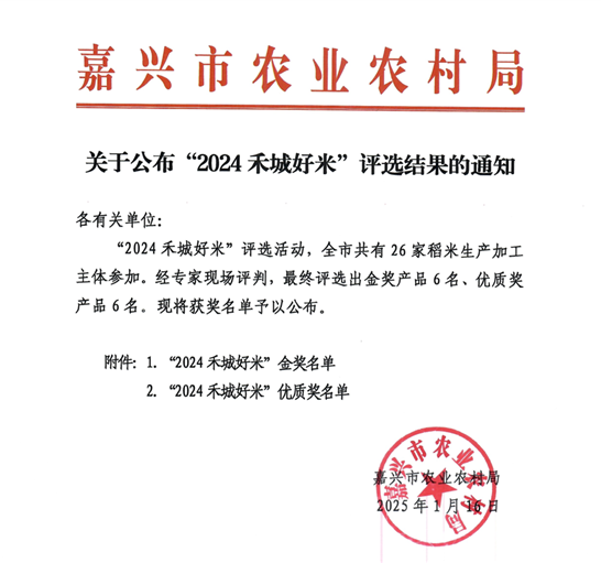 1月16日,由嘉兴市农业农村局组织的“2024禾城好米”活动评选结果公布,经过现场专家评判,最终评选出金奖产品6名,优质奖产品6名。本次活动获奖名单中,我院选育的优质水稻品种‘浙禾香2号’表现出色,共有6家获奖单位选送该品种,占比达到1/2。其中,嘉善县农星植保专业合作社的“蛙蛙响”品牌和浙江日月农业股份有限公司的“玉穗丰”品牌,均以‘浙禾香2号’为品种,荣获了“2024禾城好米”金奖。此外,浙江绿康米业有限公司的“欣南湖”品牌、浙江海元米业有限公司的“稻宝”品牌、海盐通元标丰农场的“标丰”品牌以及嘉兴市经悦园林市政建设有限公司的“蔬彩园”品牌,同样以‘浙禾香2号’为品种,获得了“2024禾城好米”优质奖。
