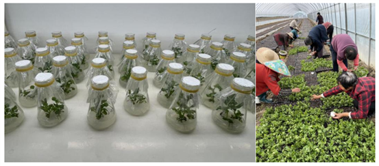 1.种质资源保护:收集并建立杭白菊种质资源圃与农艺性状数据库,记录抗病性、花期、产量与有效成分含量等指标;同时依托资源圃开展脱毒组培苗培育,组培苗能精准保留母株优良性状,且抗病性更强、生长整齐度高,有效解决传统种苗性状分化问题,从源头保障种苗质量与菊花品质一致性。