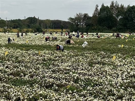 11月19日下午,我院组织科技人员前往位于桐乡市乌镇镇翔厚村的绿康菊业有限公司杭白菊种植基地,深入菊花采收前线,调研考察桐乡杭白菊生产加工工艺。