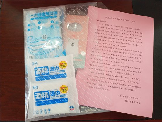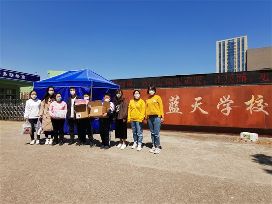新冠疫情防控取得阶段性成效,随着我市中、小学逐步开学,防护工作仍不能放松。4月28号下午,我院妇委会“南湖妈妈”及青年志愿者赴蓝天学校开展助力复学献爱心活动。“南湖妈妈”和青年志愿者给五(3)班小朋友准备了防护口罩、防护手套、消毒湿巾、抑菌洗手液、体温枪等防疫物资,赠送仪式在校园外进行,由班主任和学生代表转交给班级同学。“南湖妈妈”给每个孩子的防疫包内还准备了一份信,鼓励他们复学后努力学习、积极上进,争做红船旁的好少年。