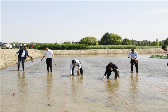 为推动乡村振兴,助力全镇农业产业高质量发展,大麻镇党委书记张标、镇长黄剑向我院沈亚强、王保君、张红梅、姚祥坦及其他共10位科技人员和农业运营人员发放了“田保姆”聘书。活动最后赴田保姆基地开展“种南湖红菱、扬红船精神”南湖红菱种植活动。