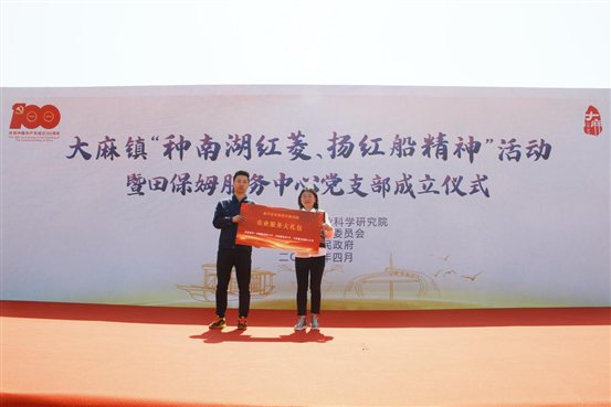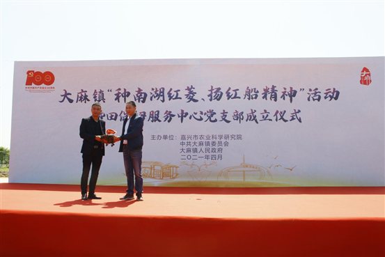 桐乡大麻举行“种南湖红菱、扬红船精神”活动暨田保姆服务中心党支部成立仪式