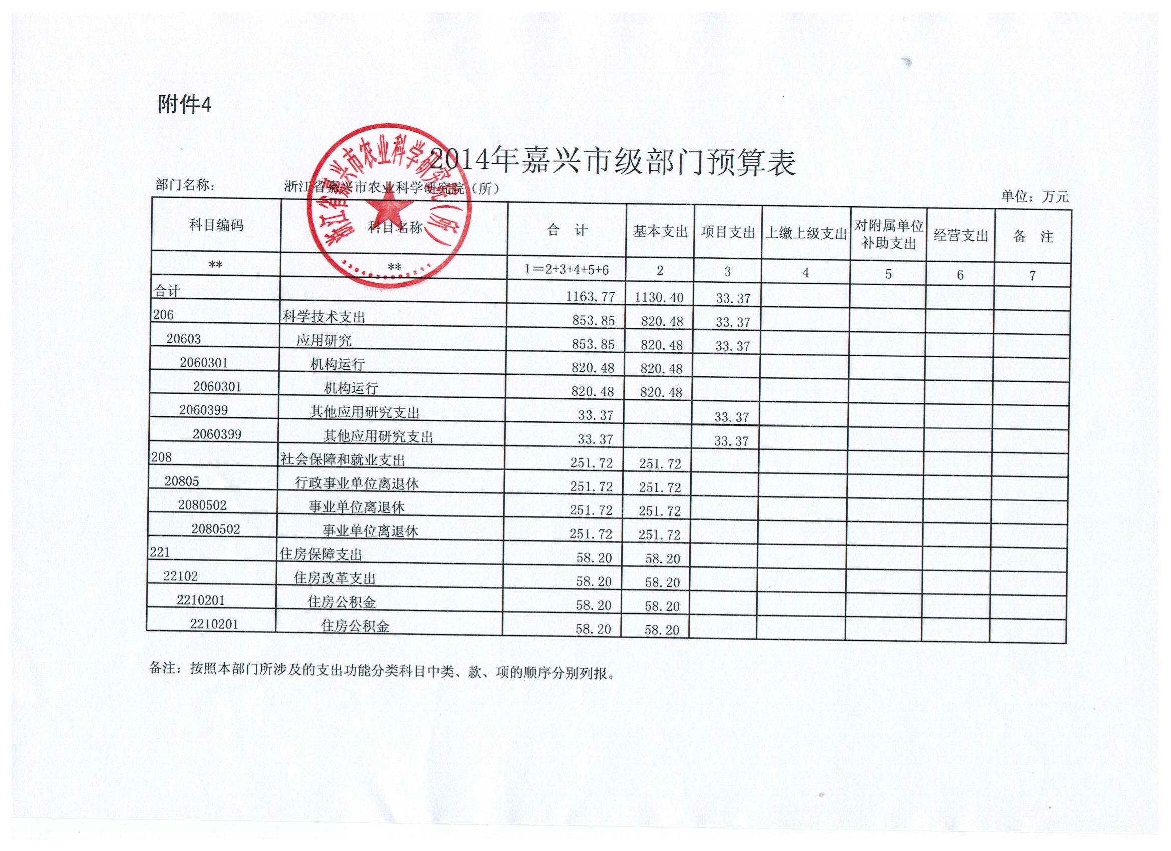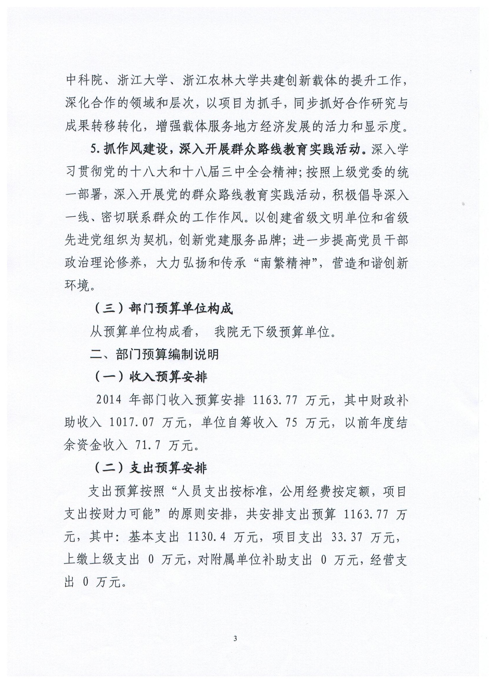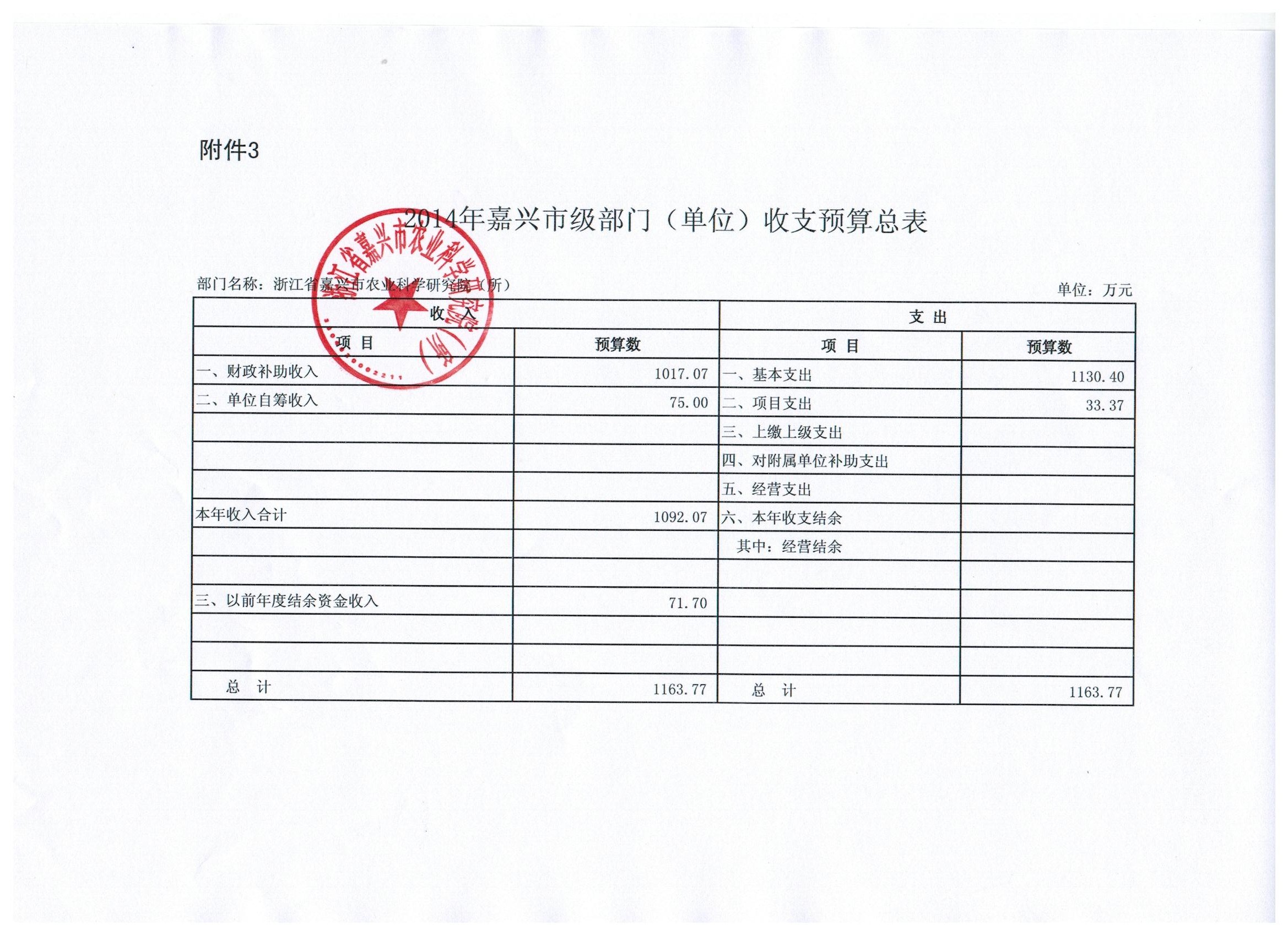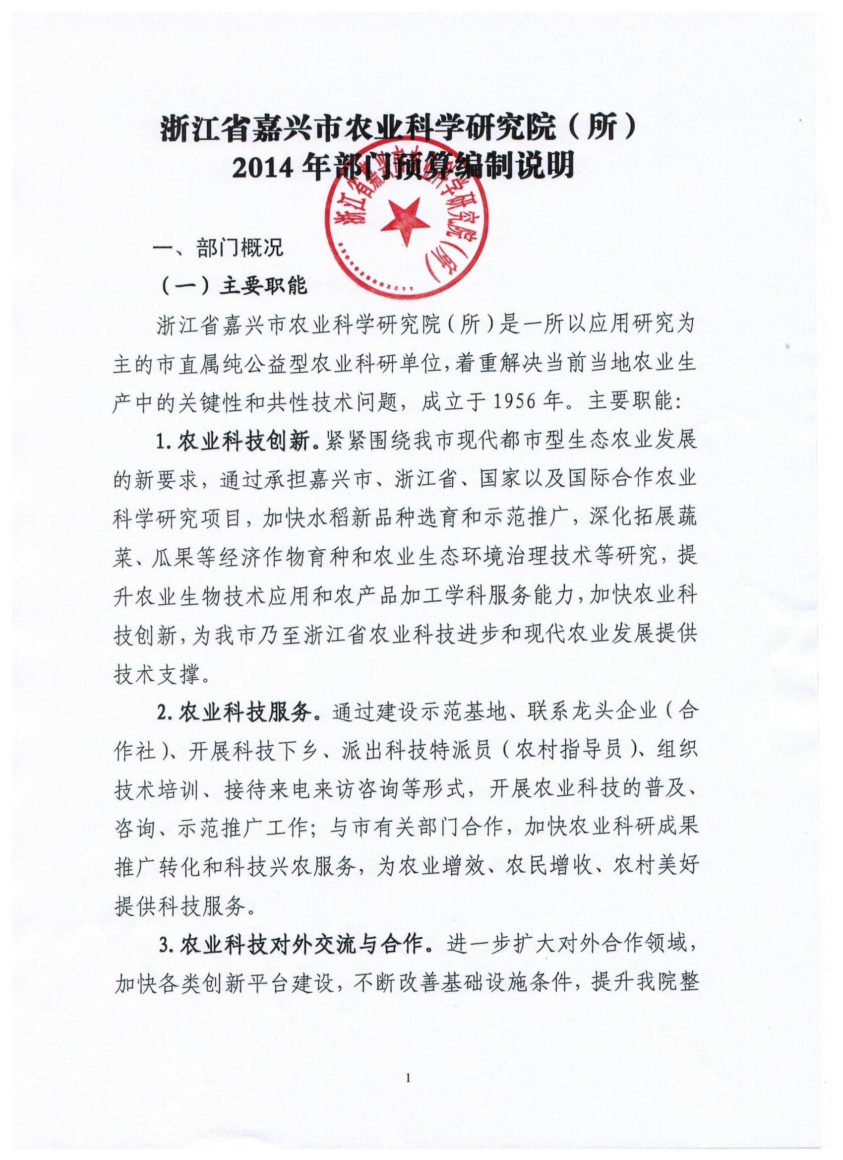 浙江省嘉兴市农业科学研究院(所)2014年部门预算