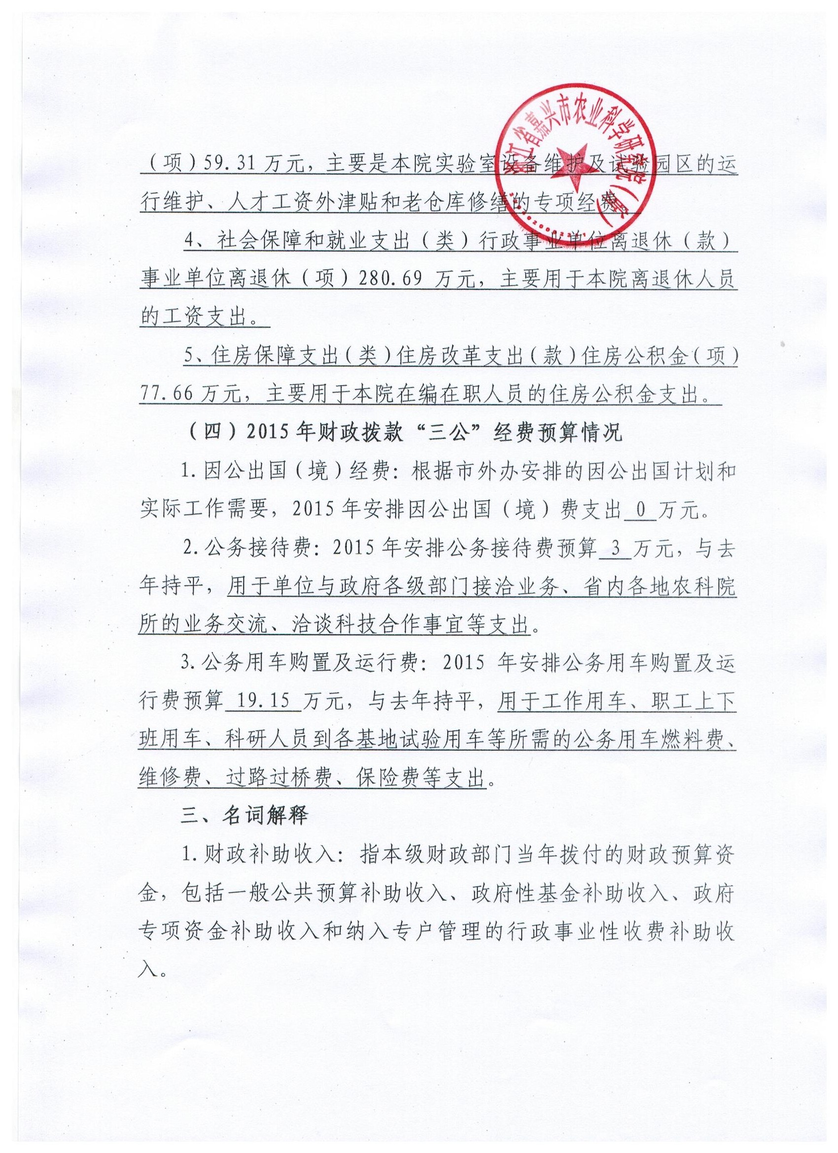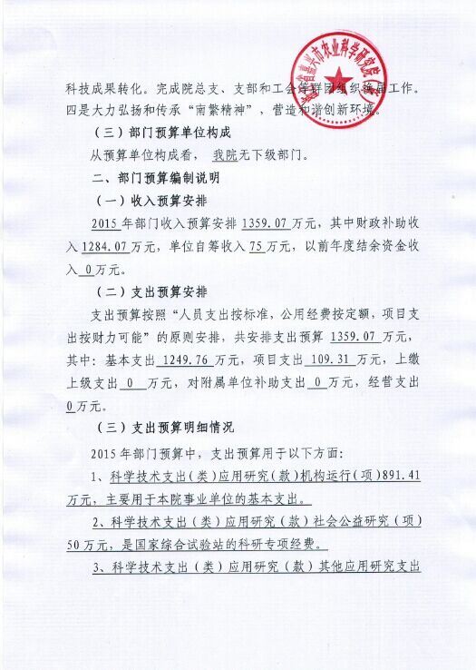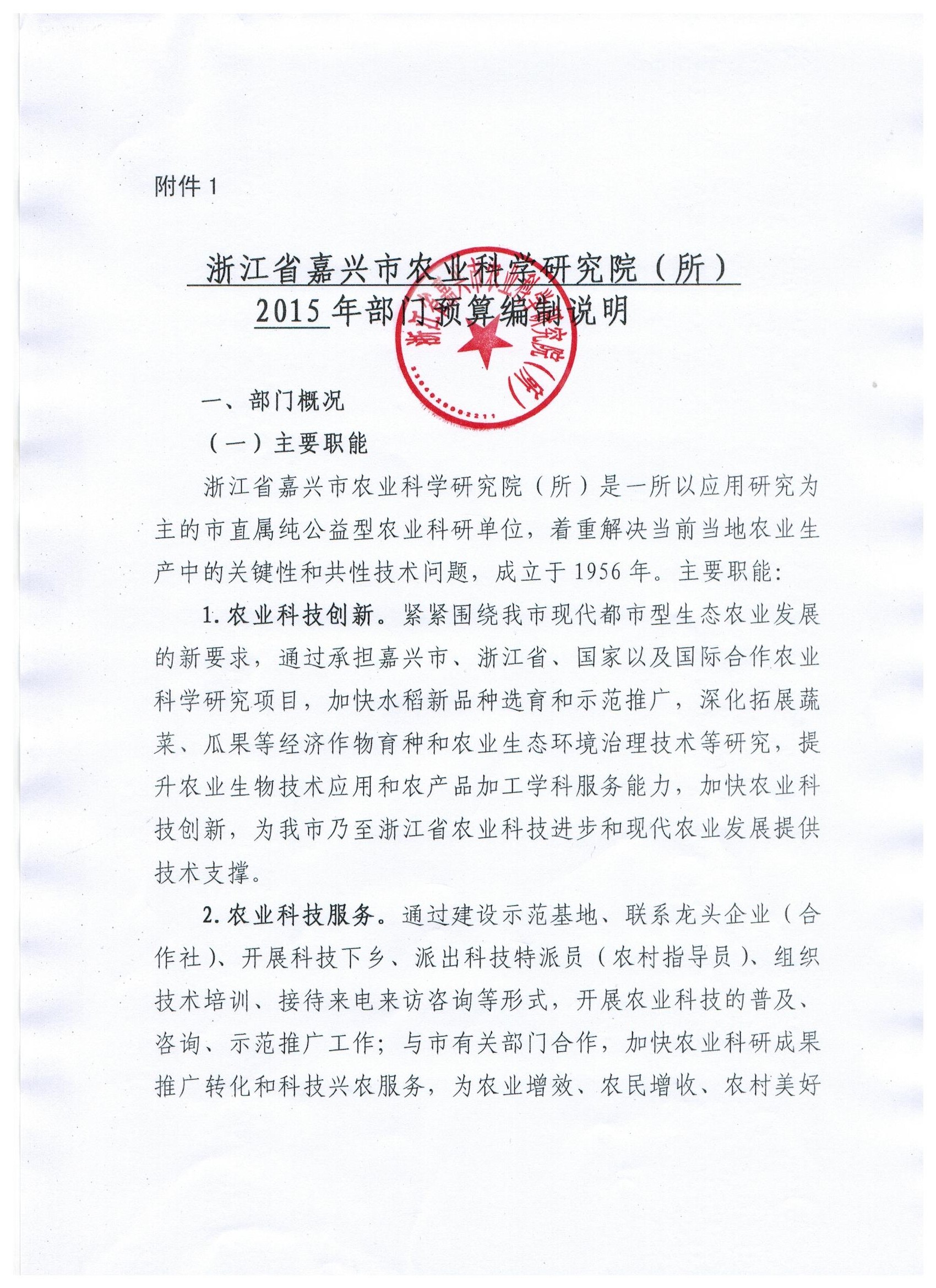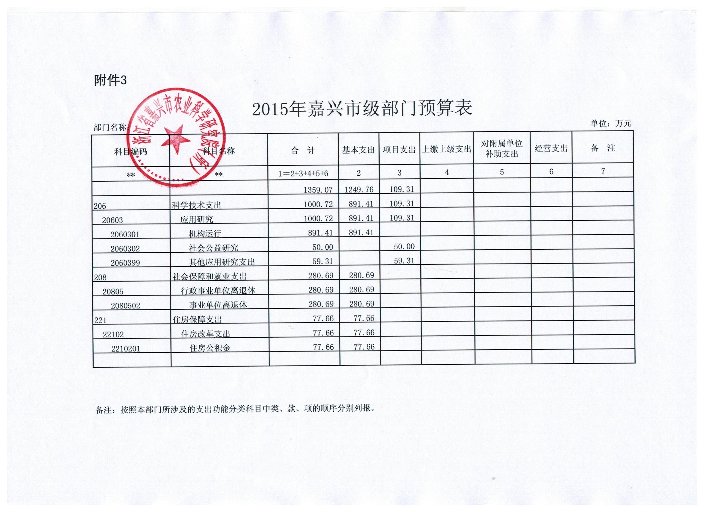 浙江省嘉兴市农业科学研究院(所)2015年部门预算