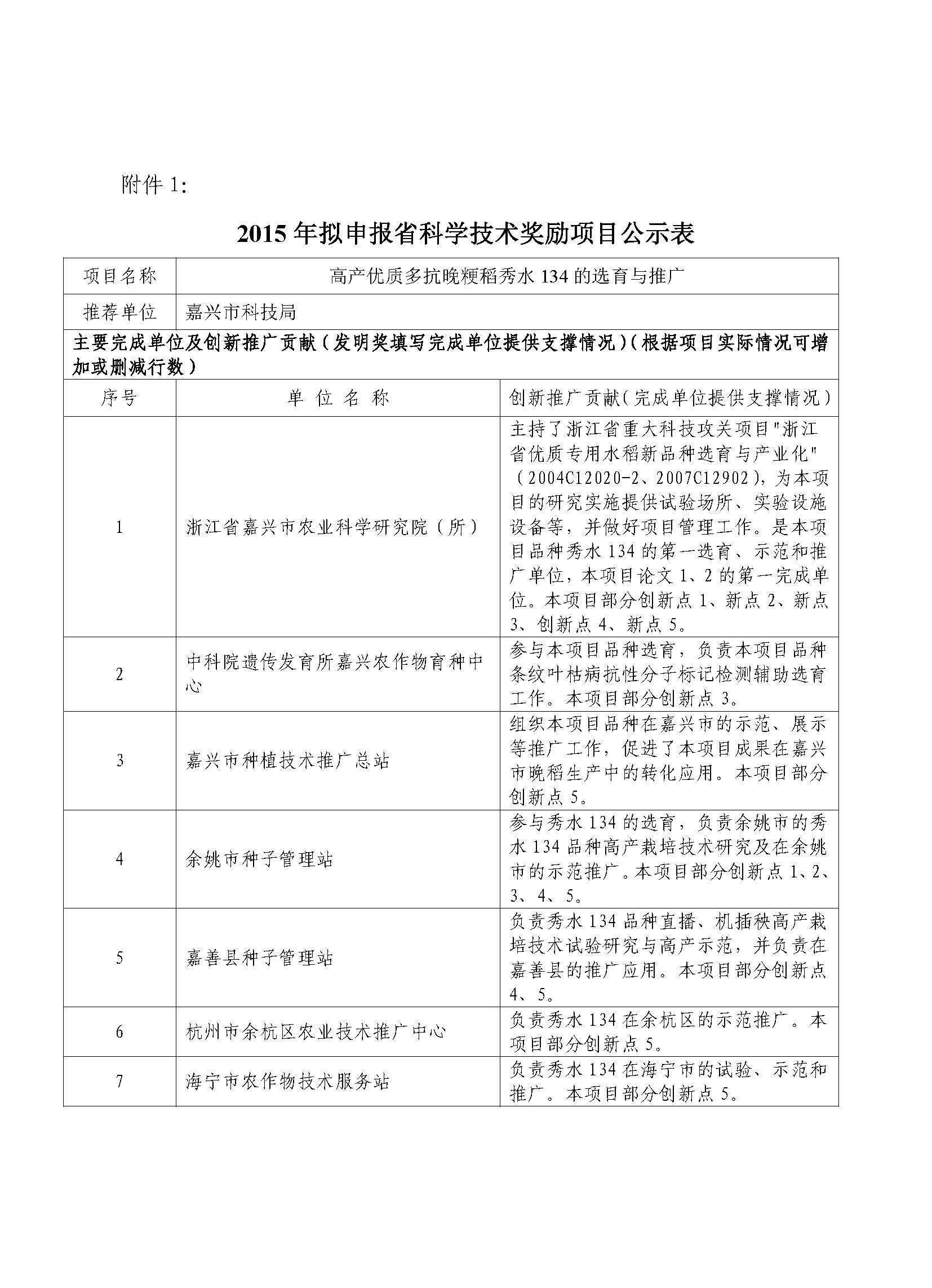 关于拟推荐2015年省科学技术奖励项目的公示3
