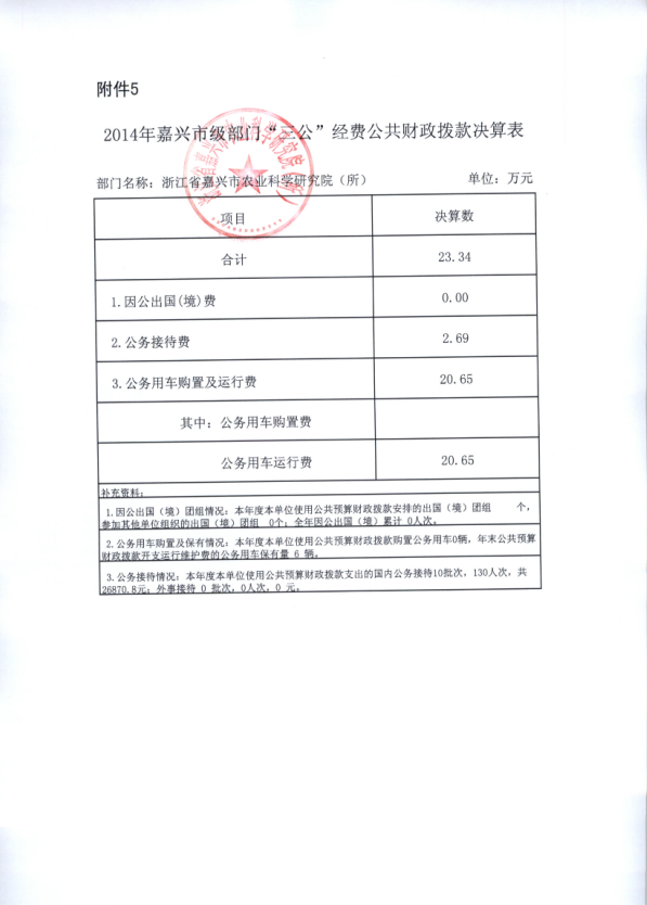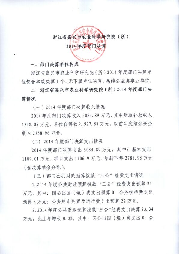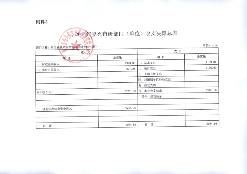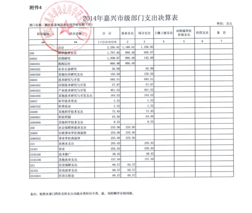 嘉兴市农科院2014年度部门决算