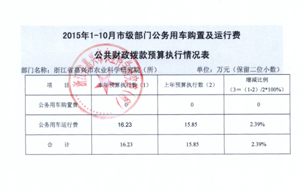 2015年1-10月市级部门公务用车购置及运行费公共财政拨款预算执行情况表
