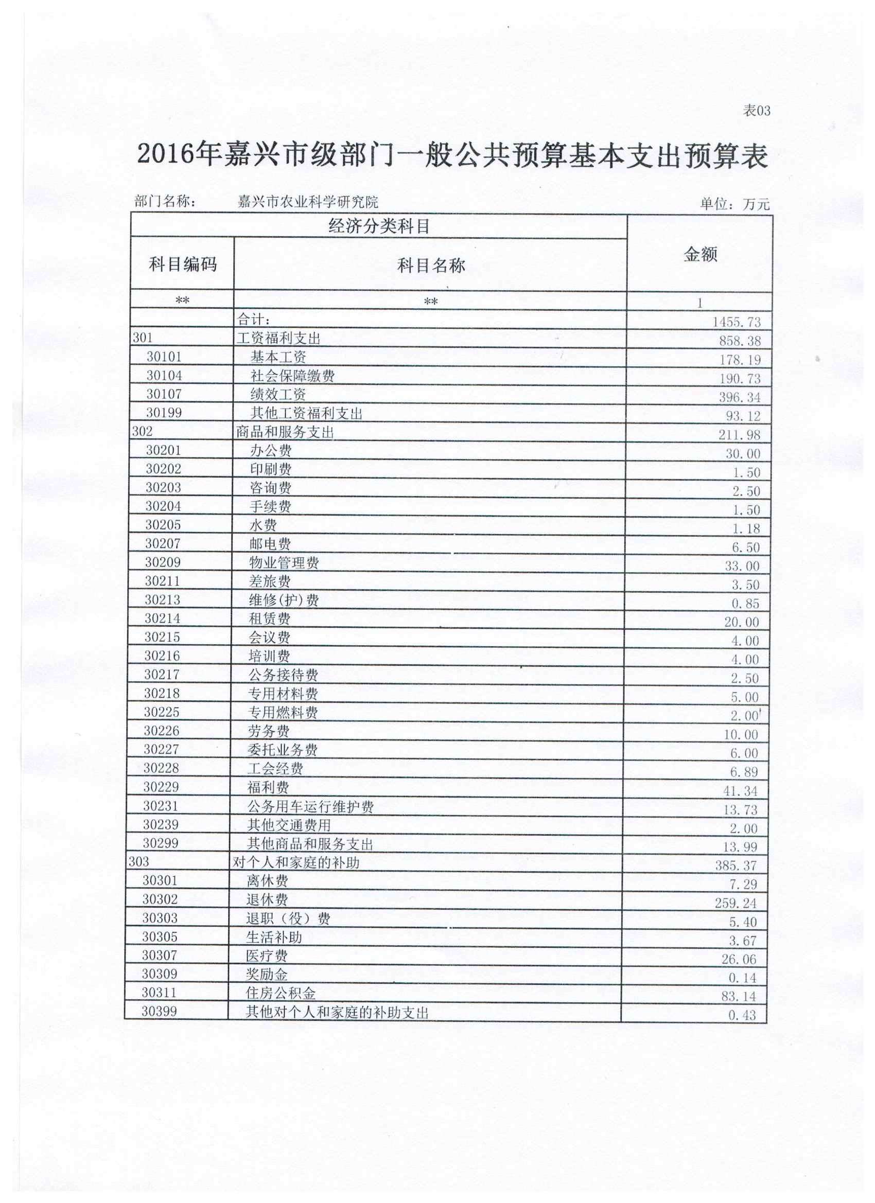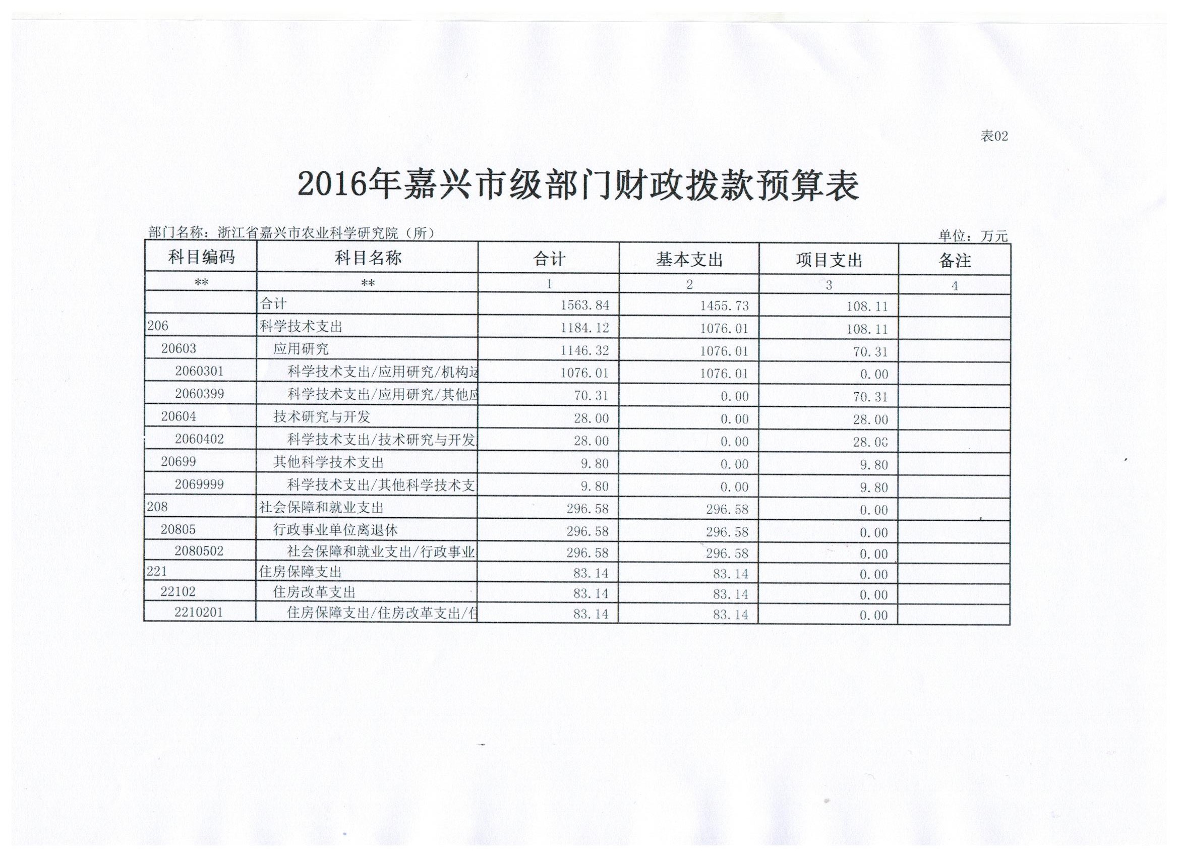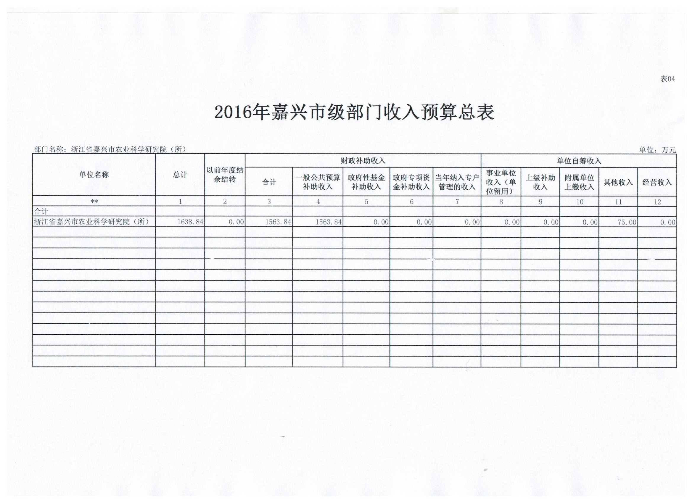 浙江省嘉兴市农业科学研究院(所)2016年部门预算