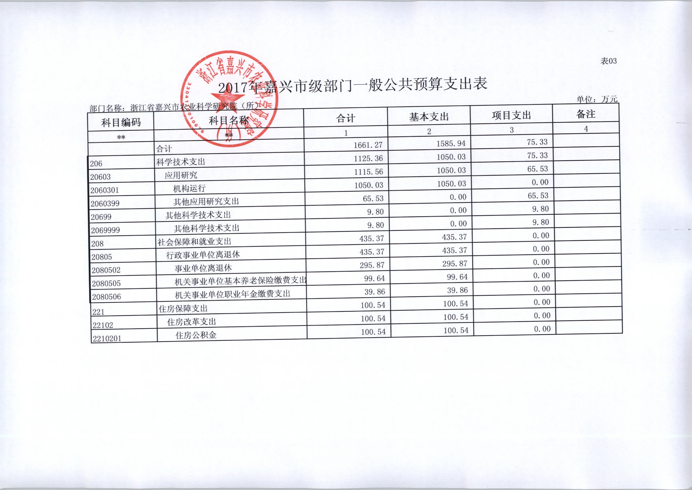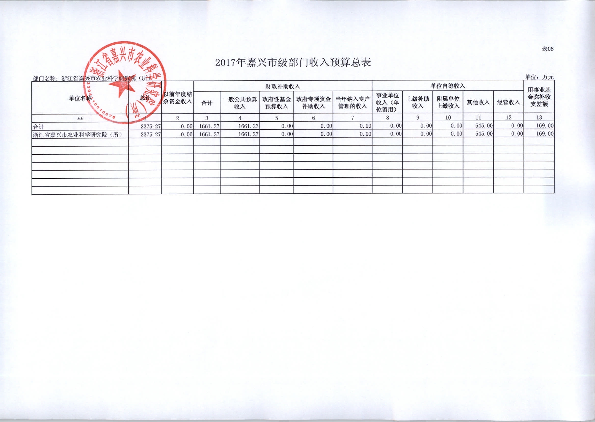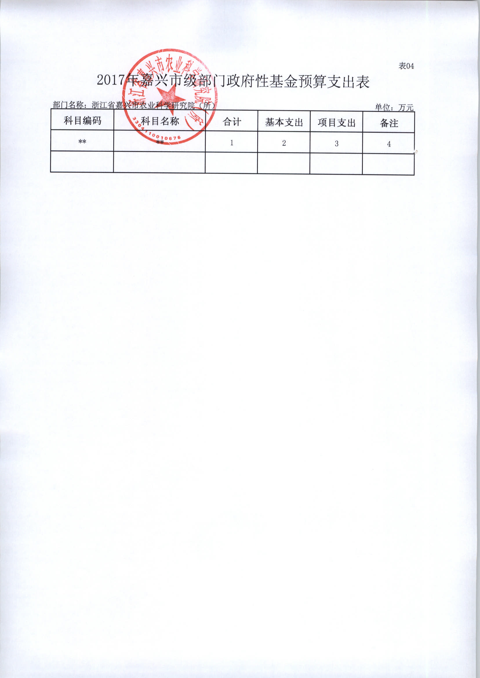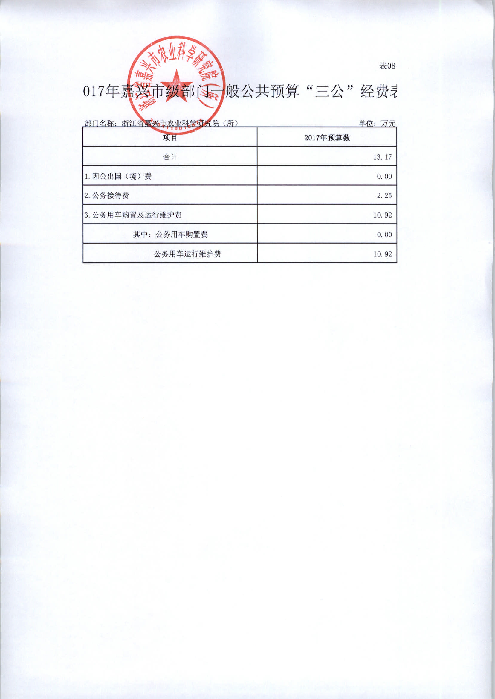 浙江省嘉兴市农业科学研究院(所)2017年部门预算