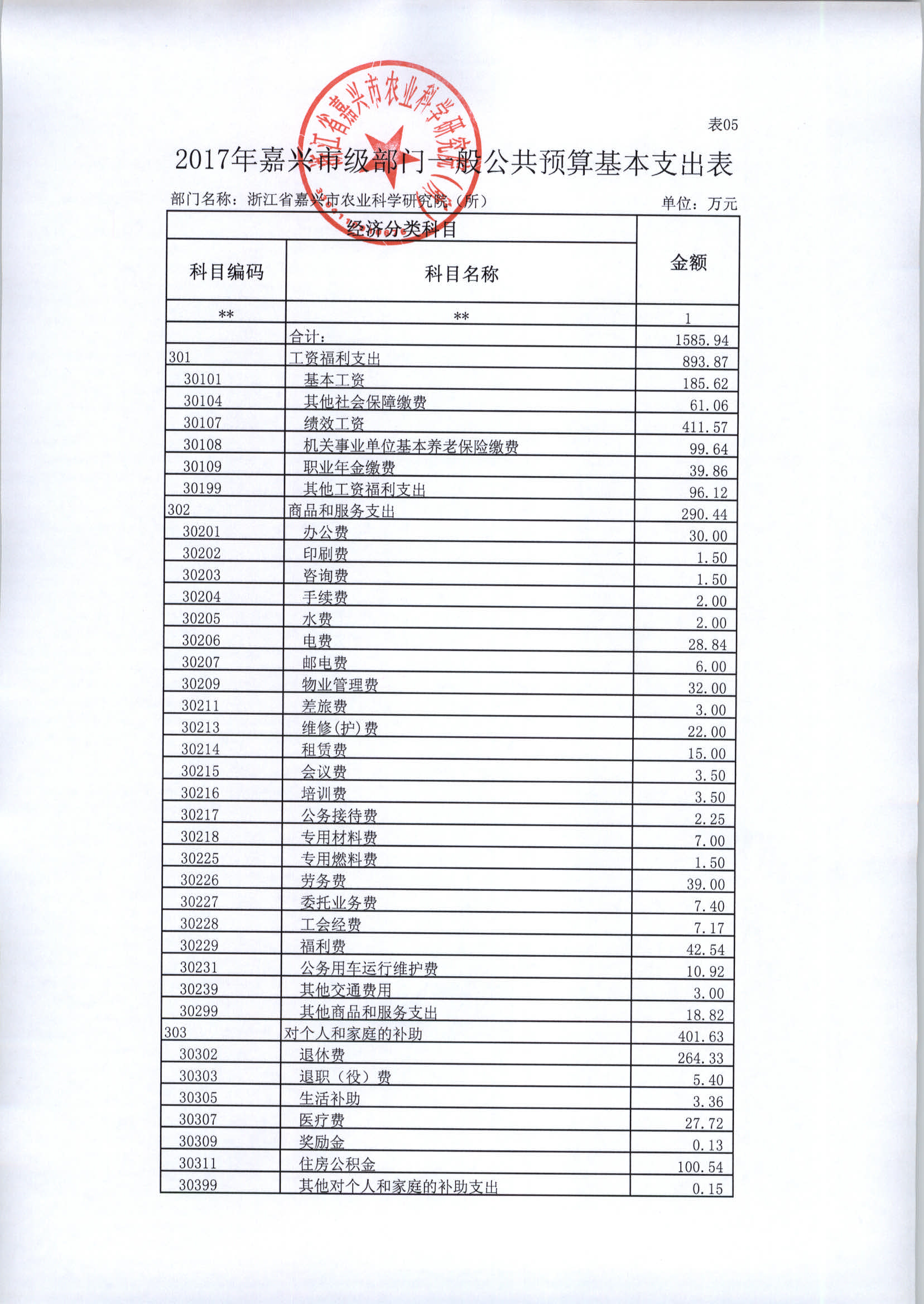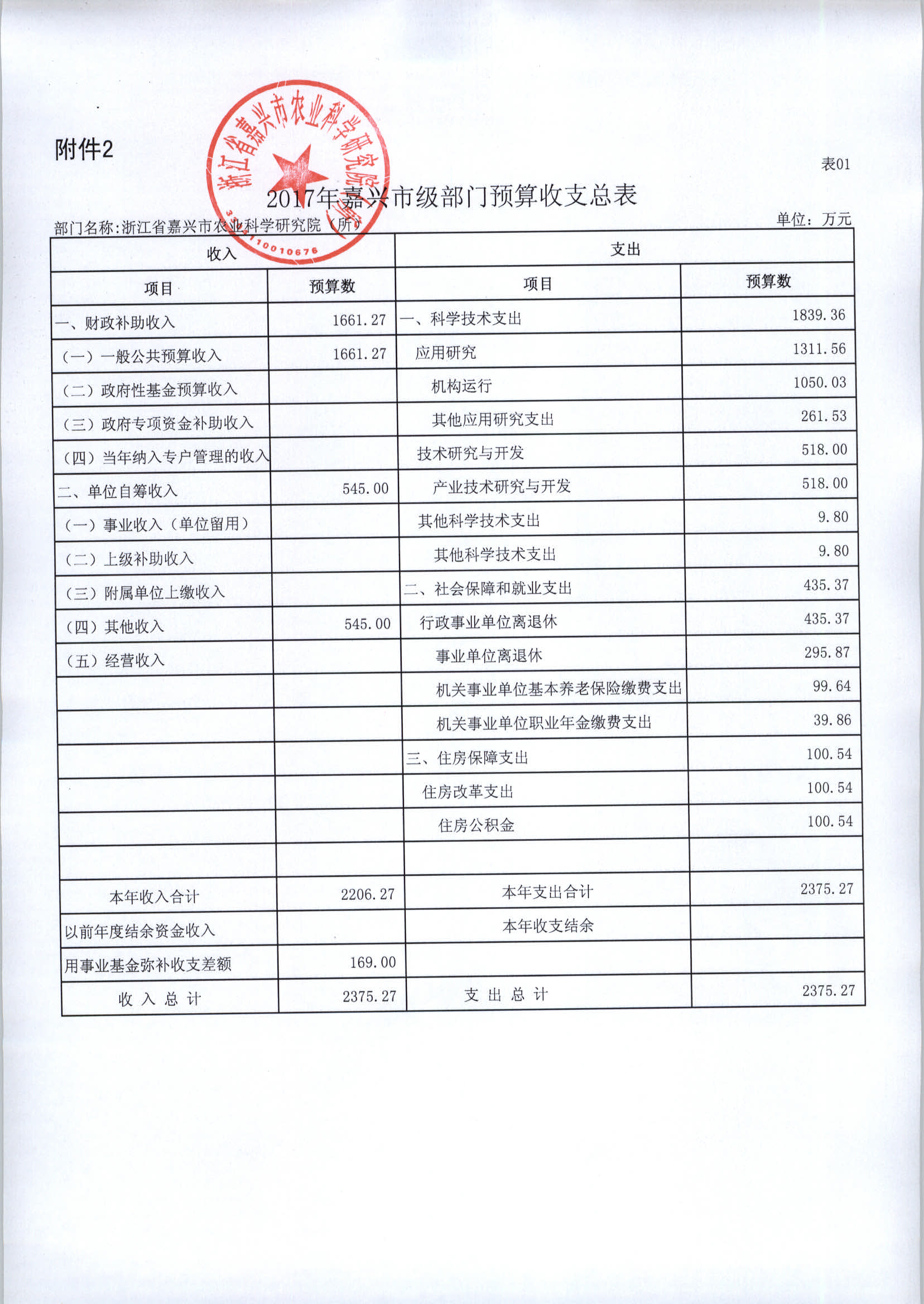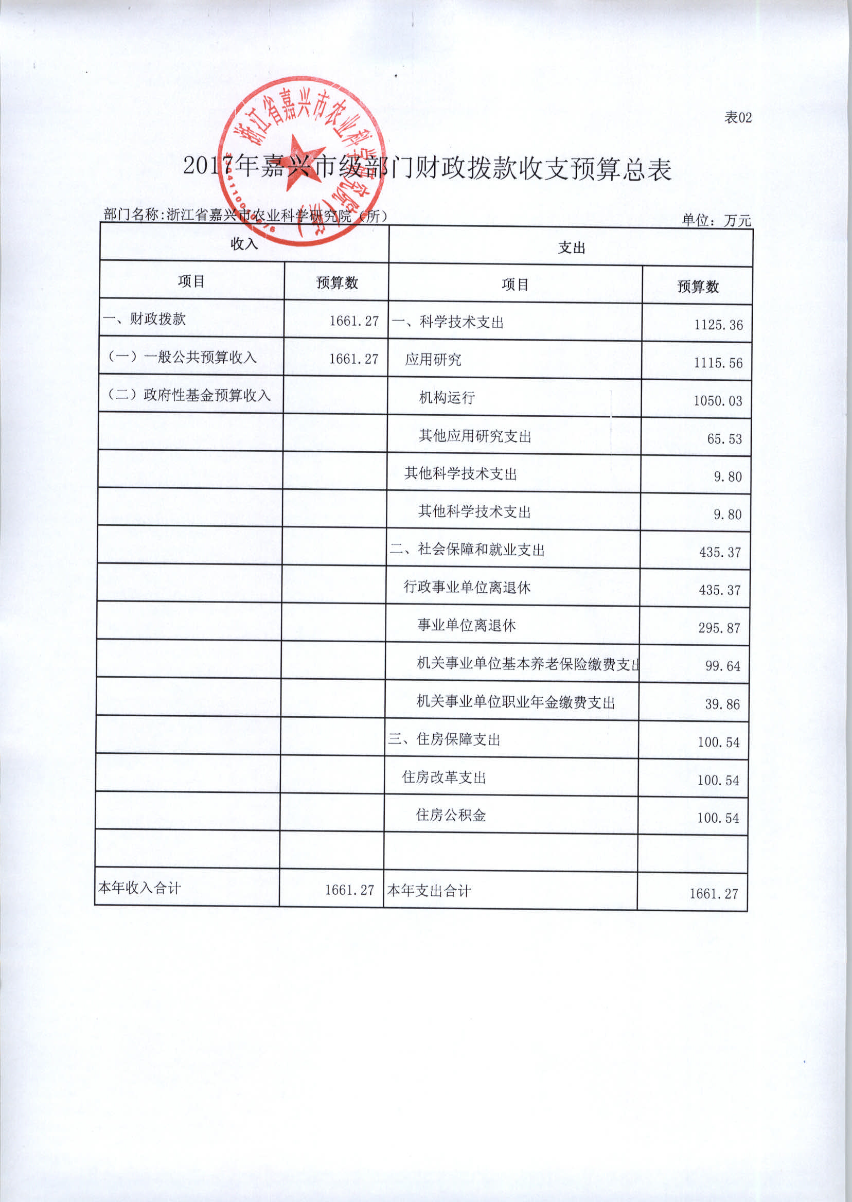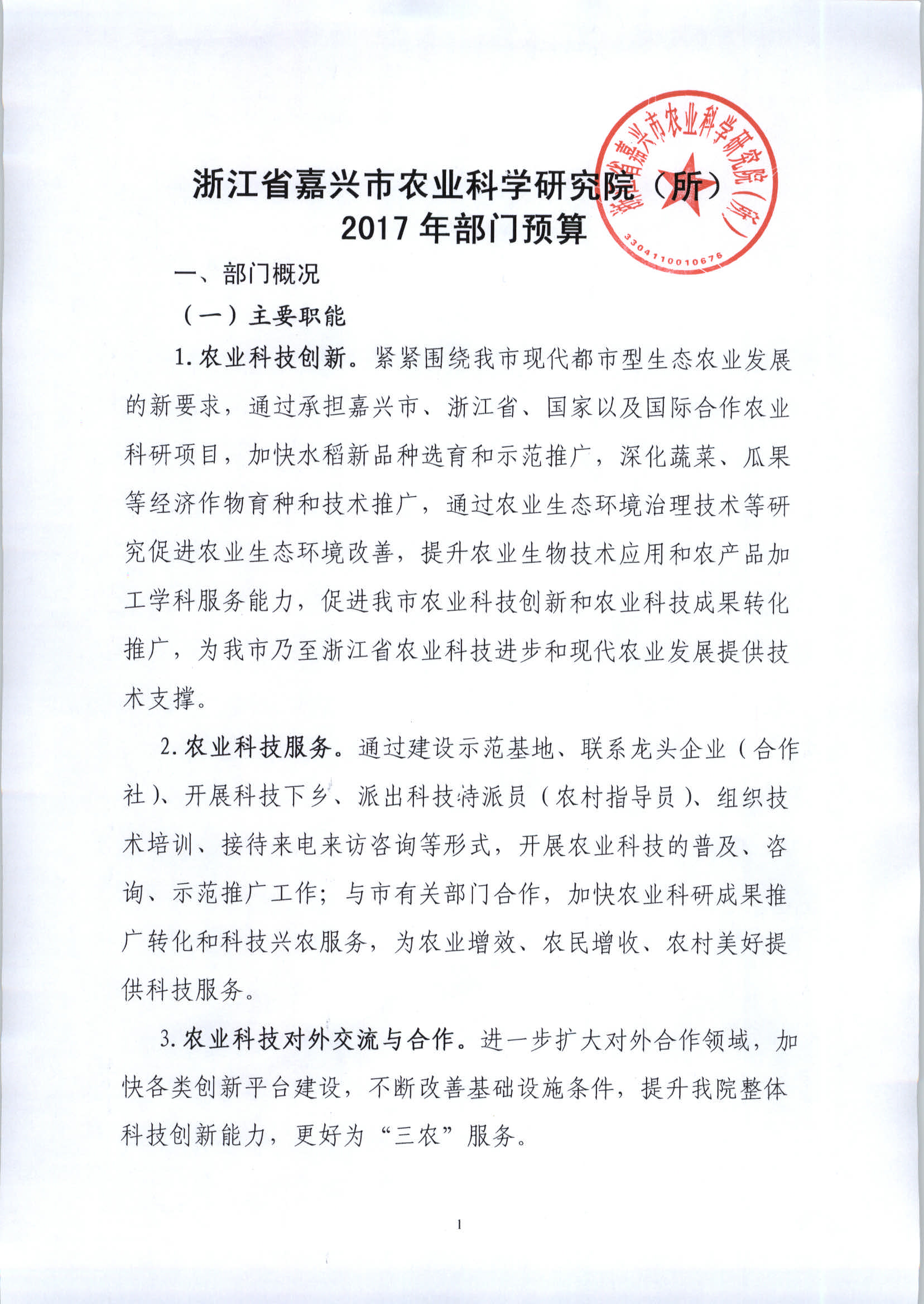 浙江省嘉兴市农业科学研究院(所)2017年部门预算