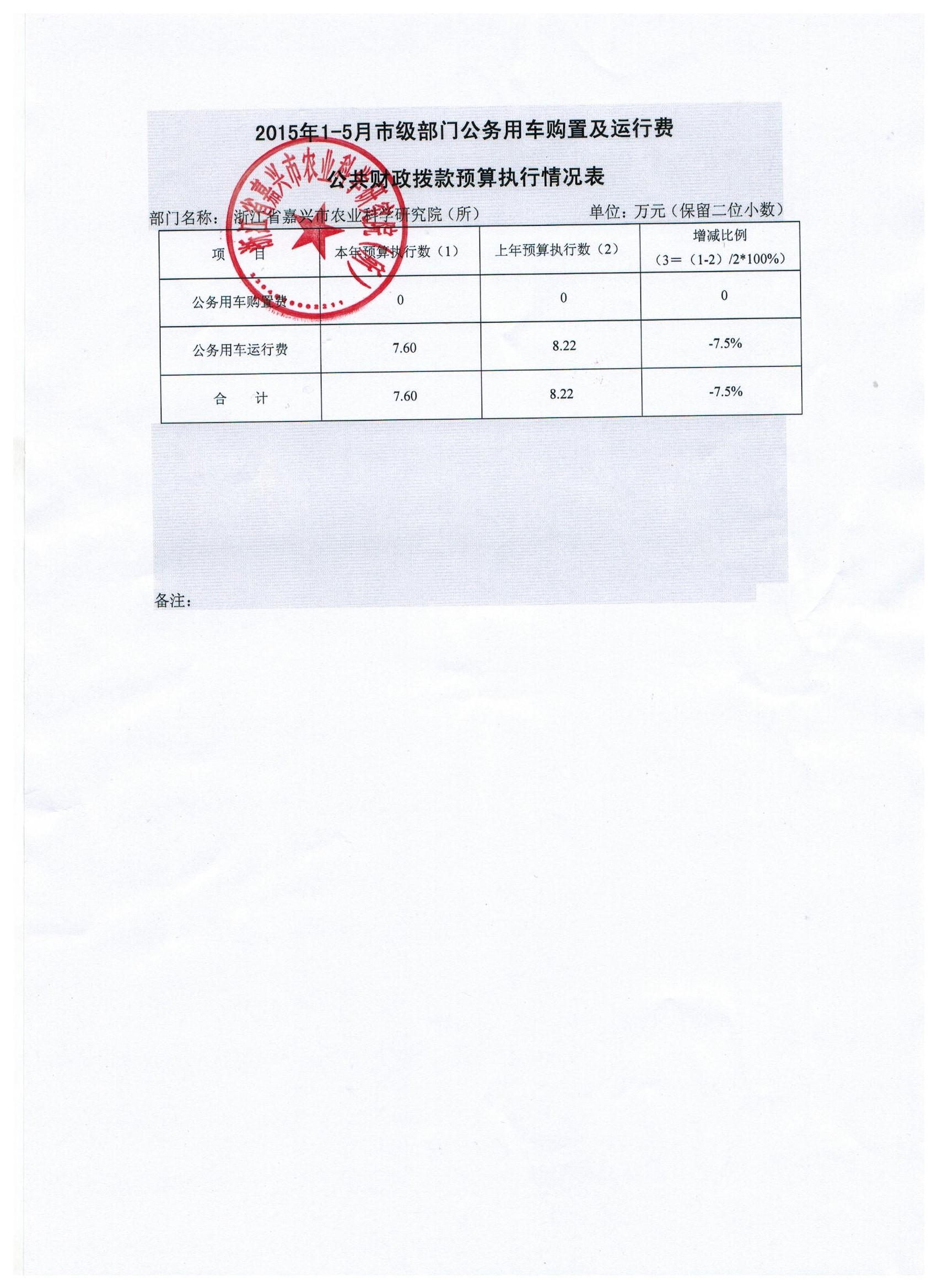 2015年1-5月市级部门公务用车购置及运行费公共财政拨款预算执行情况表