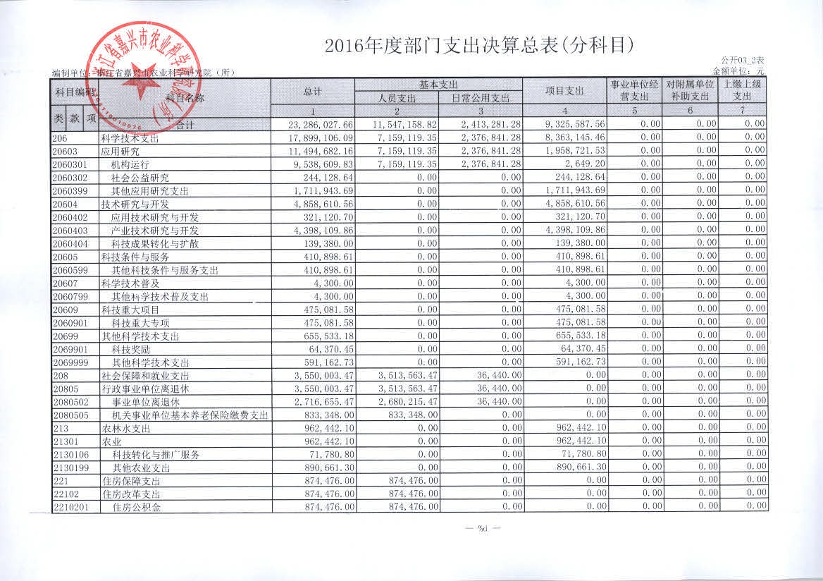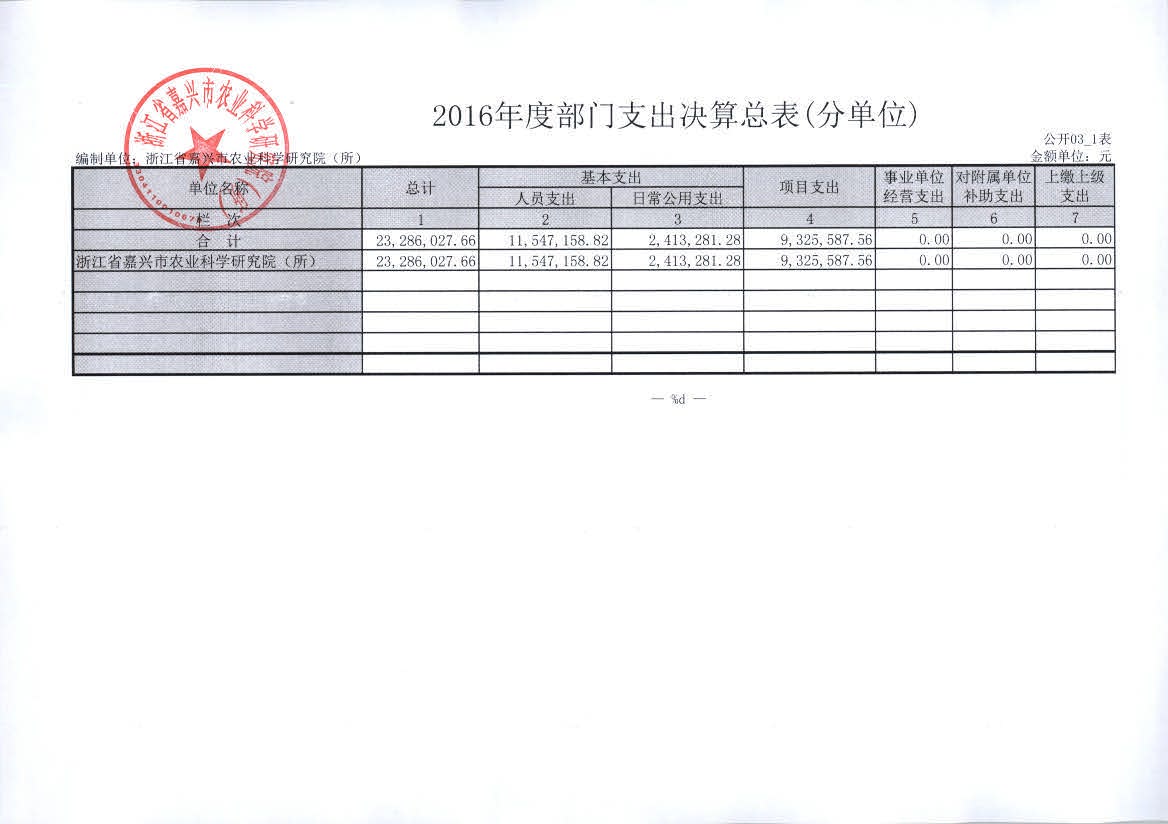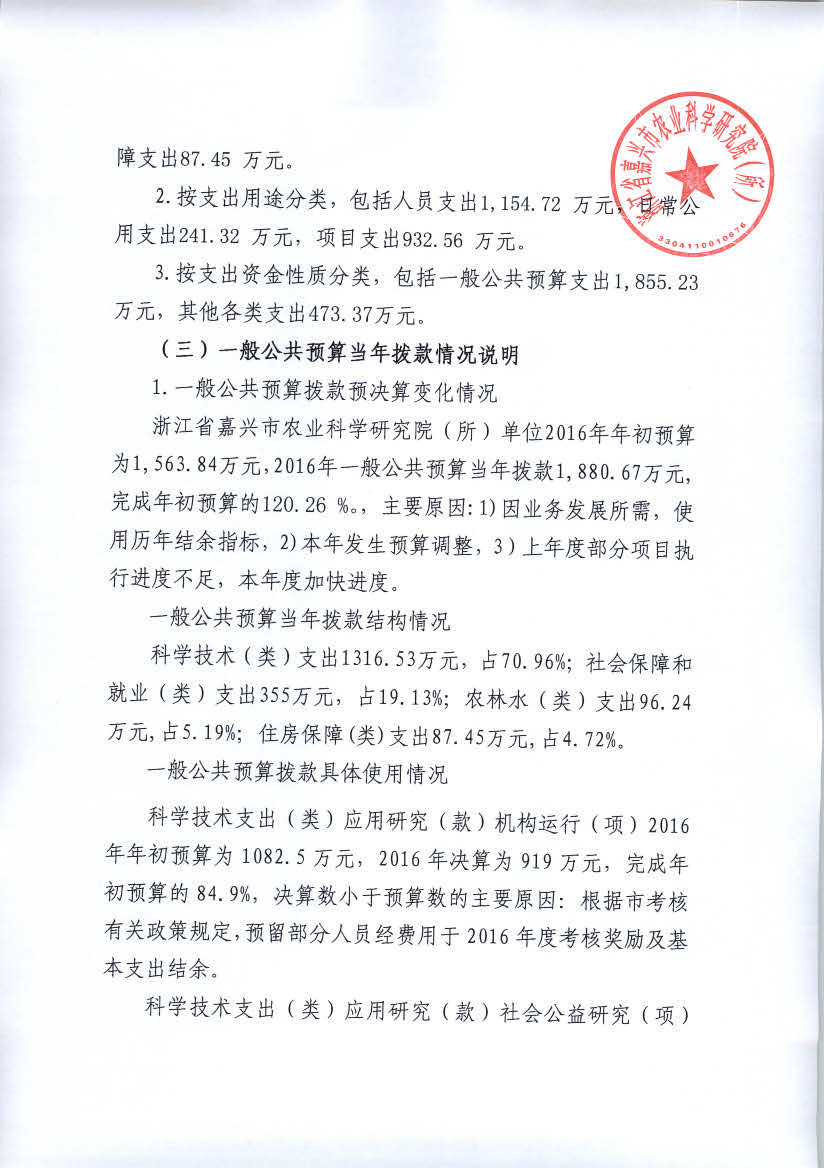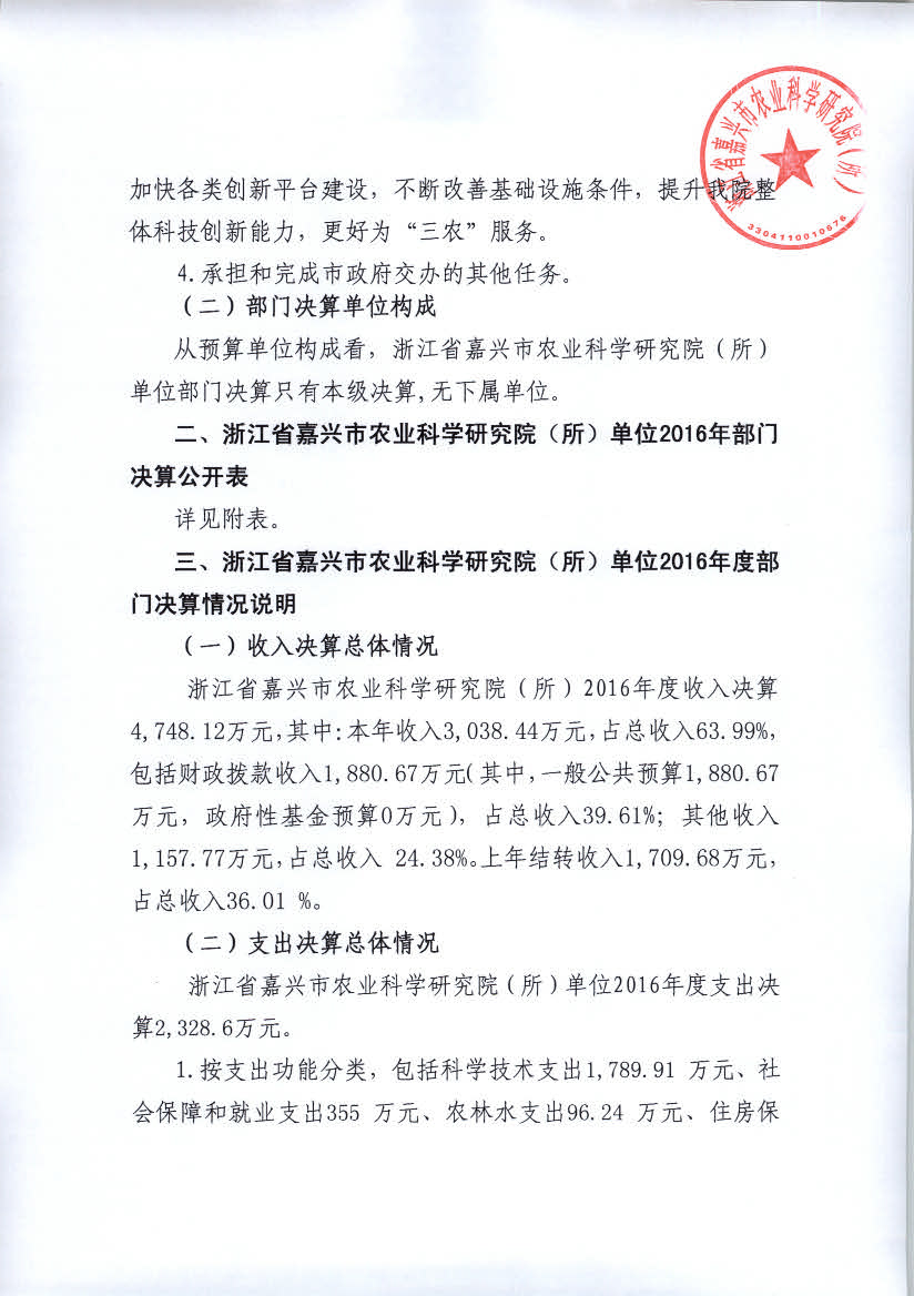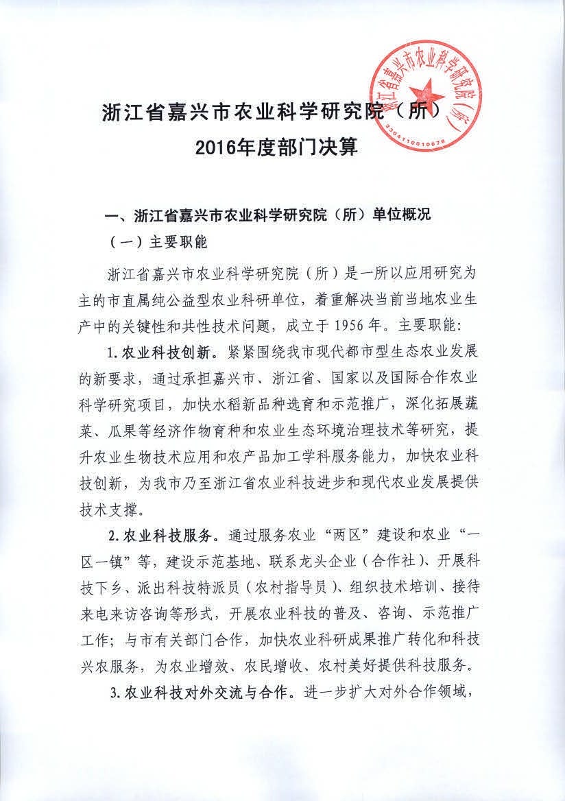 嘉兴市农科院2016年度部门决算