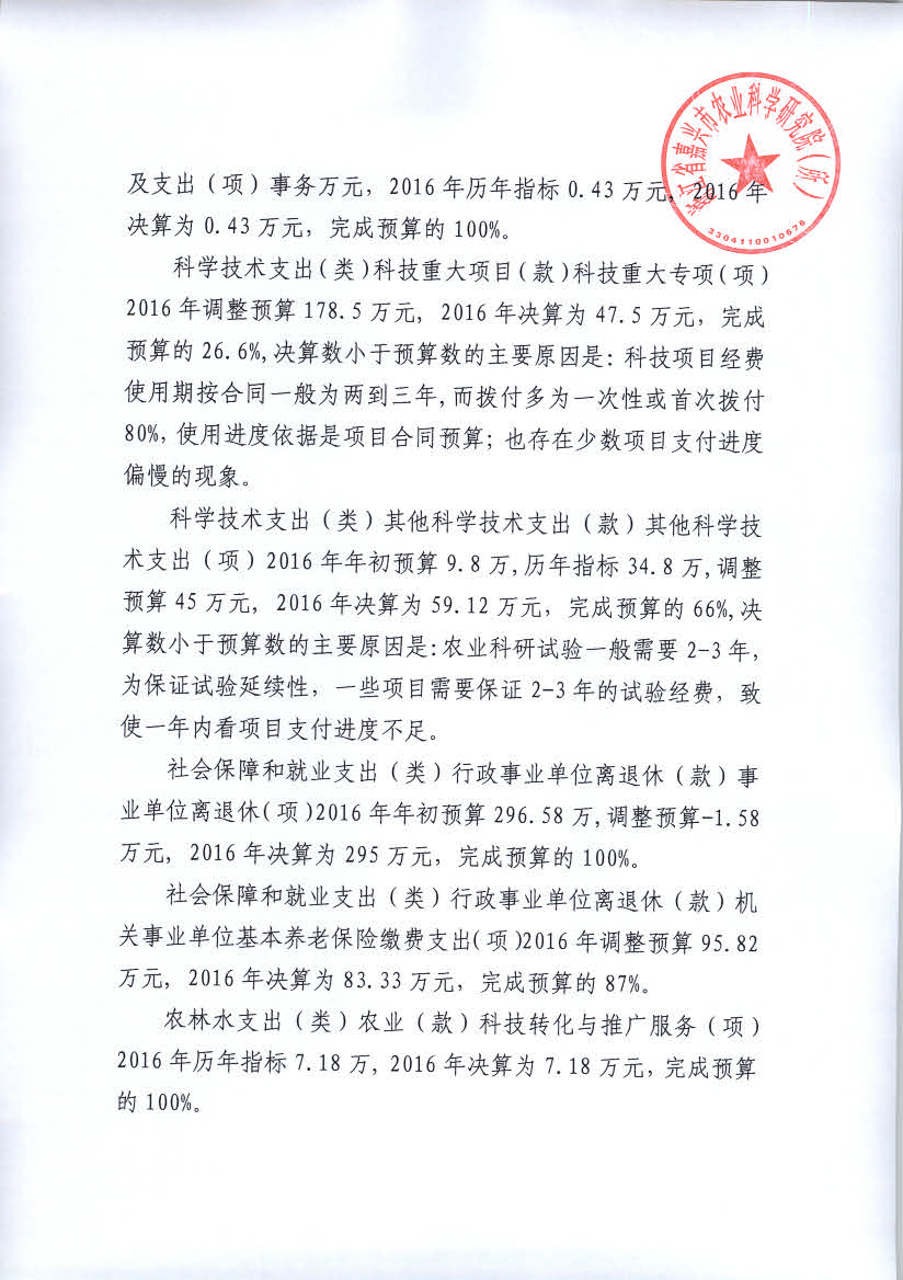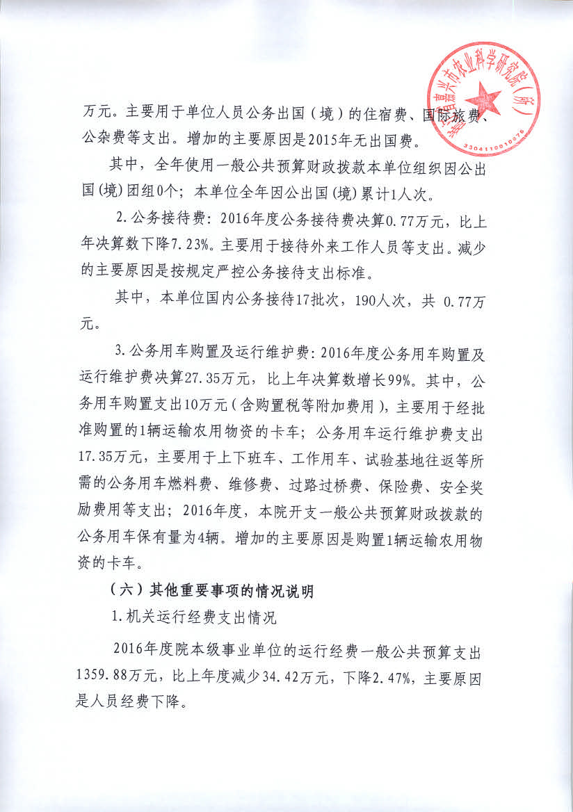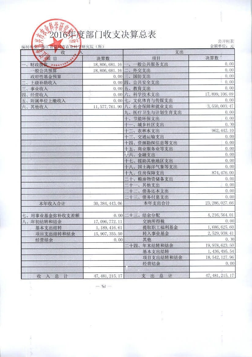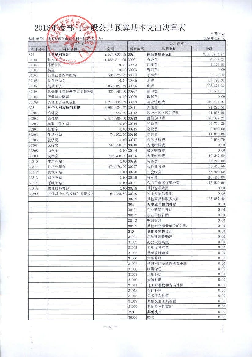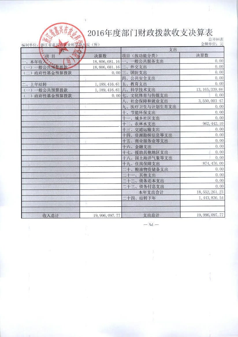 嘉兴市农科院2016年度部门决算