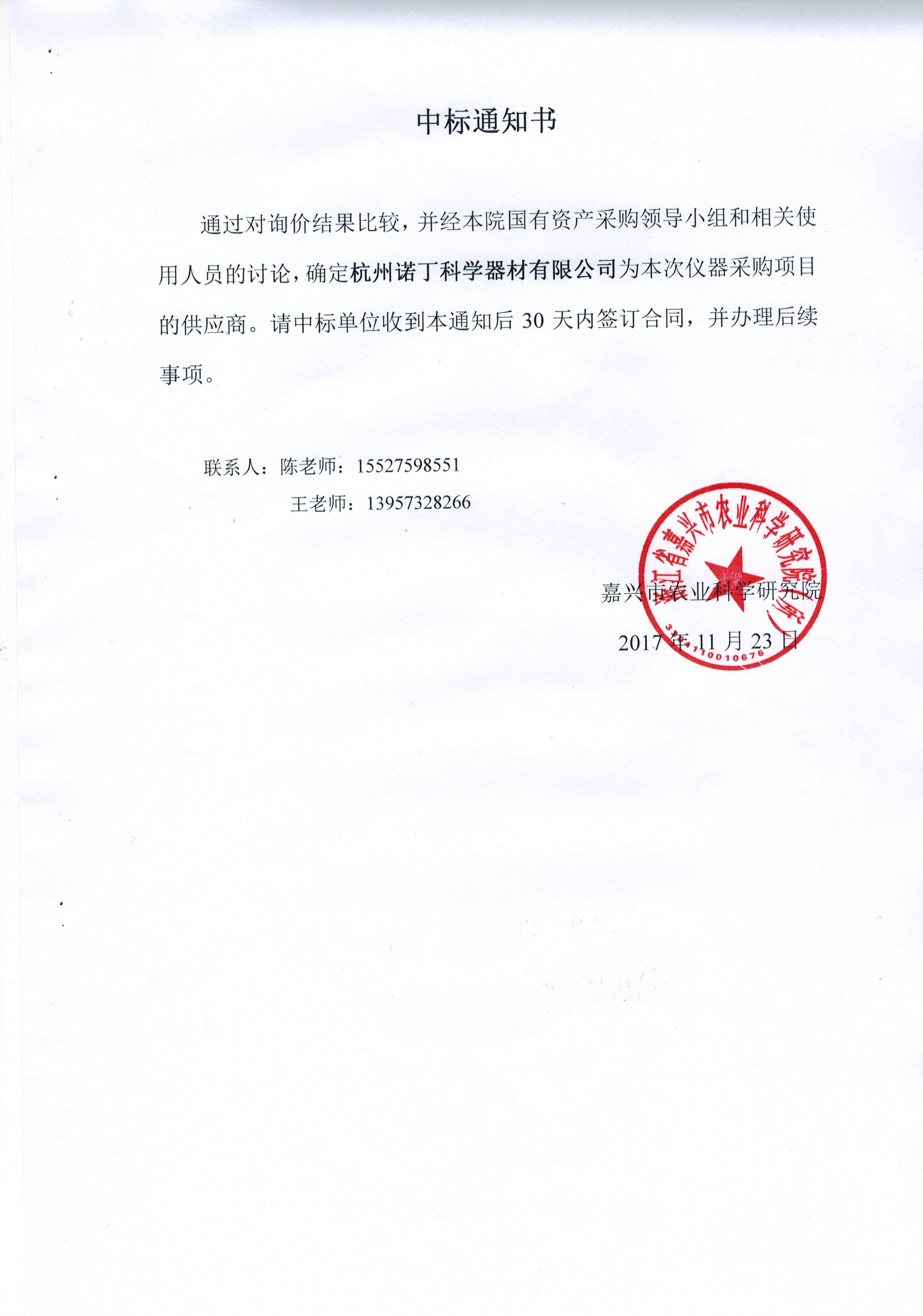 中标通知书
